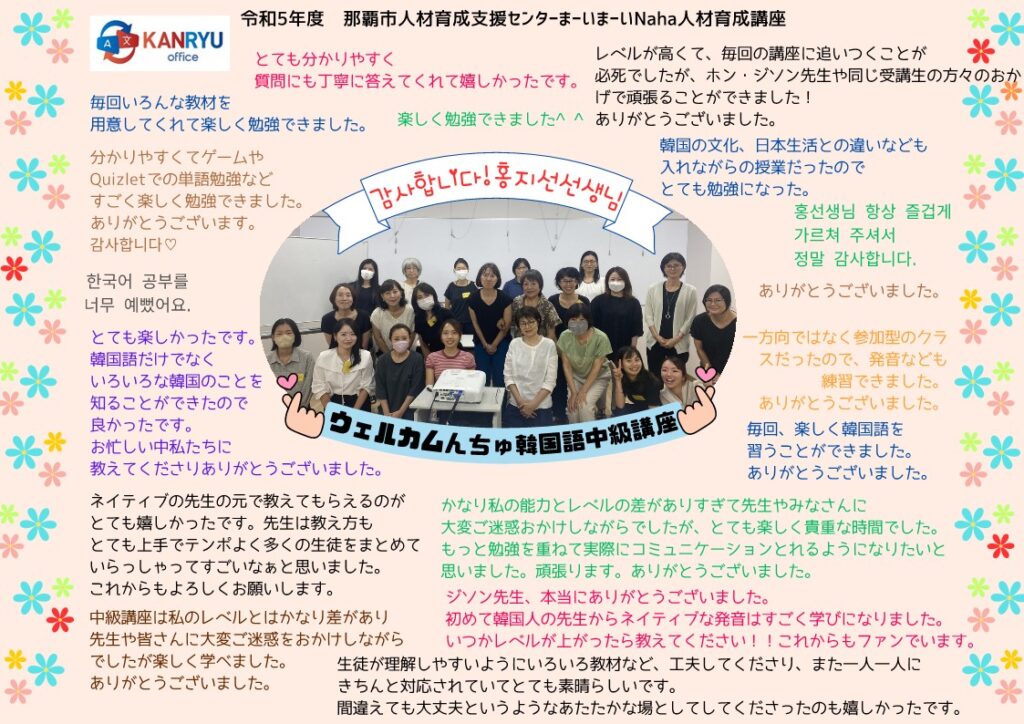 ・沖縄市コザインターナショナルプラザ韓国語講座:2021年